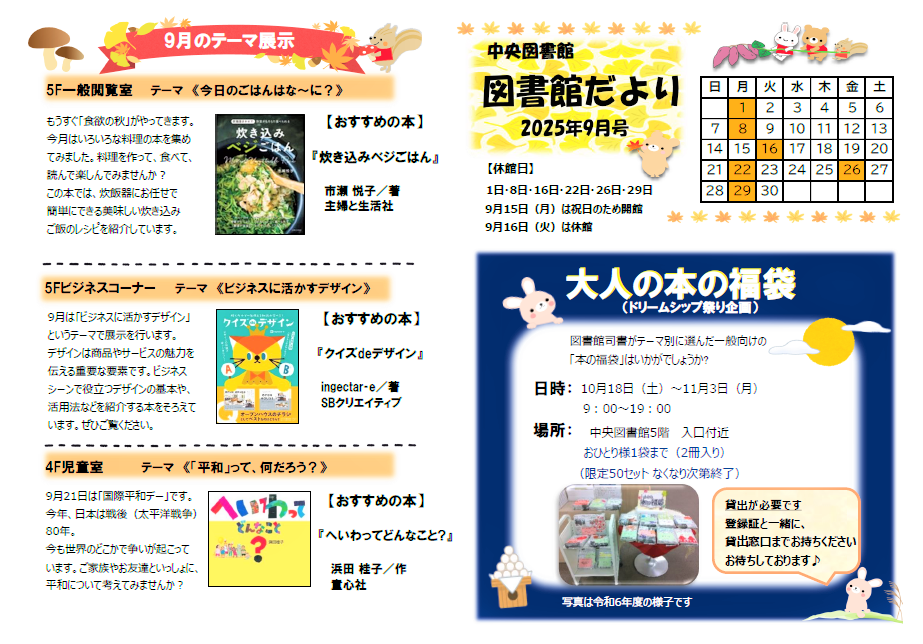 中央図書館だより2025年9月(pdf 1.63 MB)